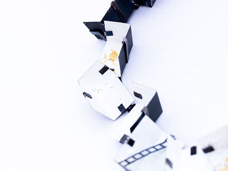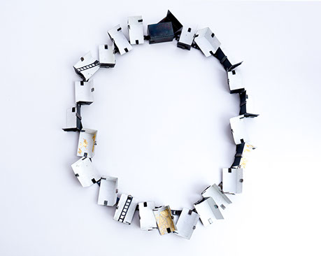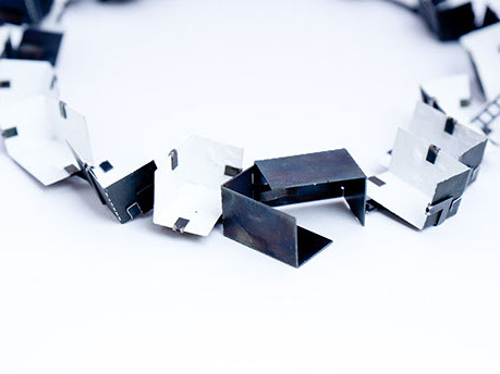 Neckpiece.. Oxidysed steel, iron, gold leaf, acrylic paint.